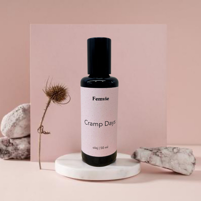 Ve spolupráci s naturopatkou jsme vytvořili unikátní Cramp Days olej z ingrediencí známých pro své pozitivní účinky na uvolnění bolestivých a namáhaných částí těla a vytvořil tak ideální regenerační péči, kterou oceníte během fyzického nepohodlí v průběhu cyklu, po sportu a při únavě. Olej je 100% přírodní, rychle se vstřebává do pokožky a nabízí přírodní alternativu k analgetickým mastem.