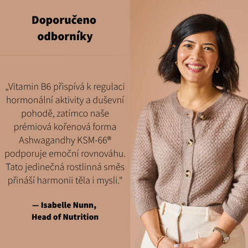 Obsahuje vitamin B6, který podporuje normální psychickou činnost, a ašvagandu, která napomáhá energii a psychické odolnosti.
